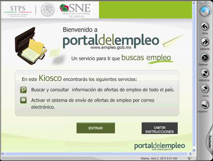 Los Kioscos de consulta del Portal del Empleo son de fácil operación, ya que cuentan con un monitor que permite consultar información por medio del tacto en pantalla.